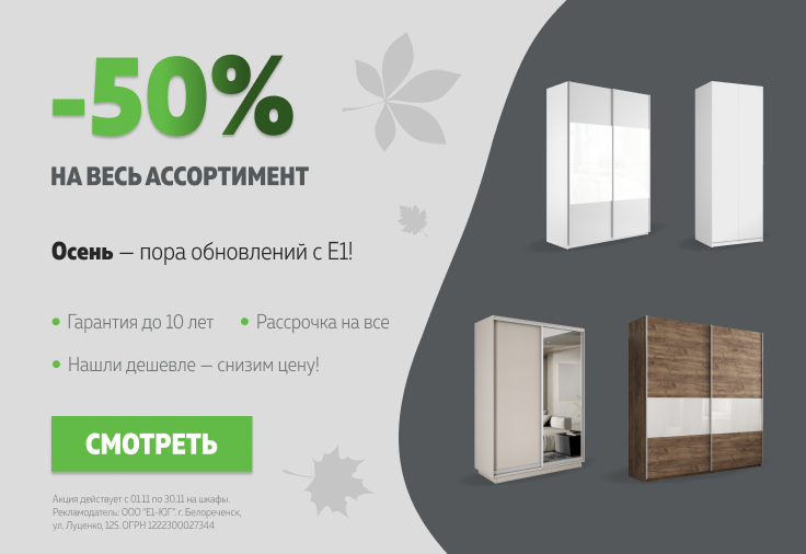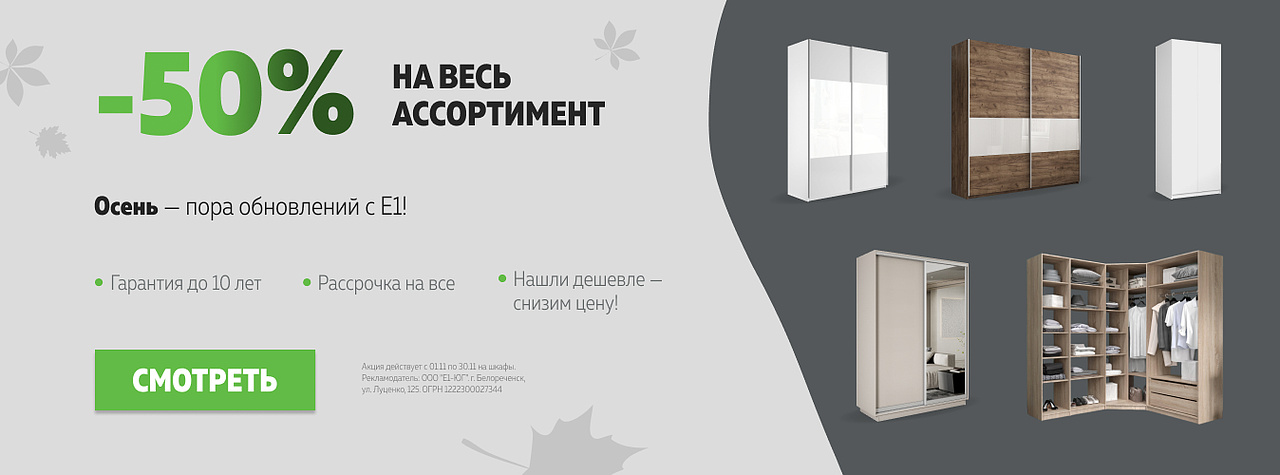 Мы уверены в качестве продукции, поэтому даем гарантию до 10 лет (в зависимости от типа шкафа). Сейчас мы производим серийные шкафы, шкафы на заказ (в том числе и встроенные), а также гардеробные.